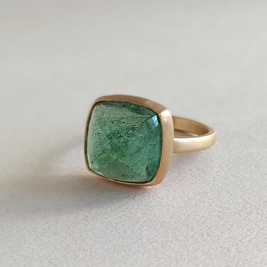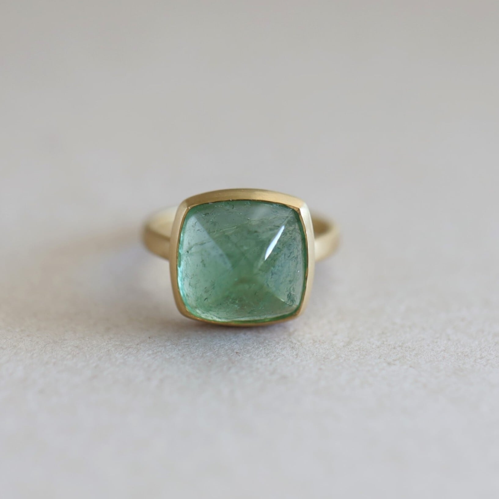 【Sugar】K18 グリーントルマリン シュガーローフカット リング 11号 one-of-a-kind