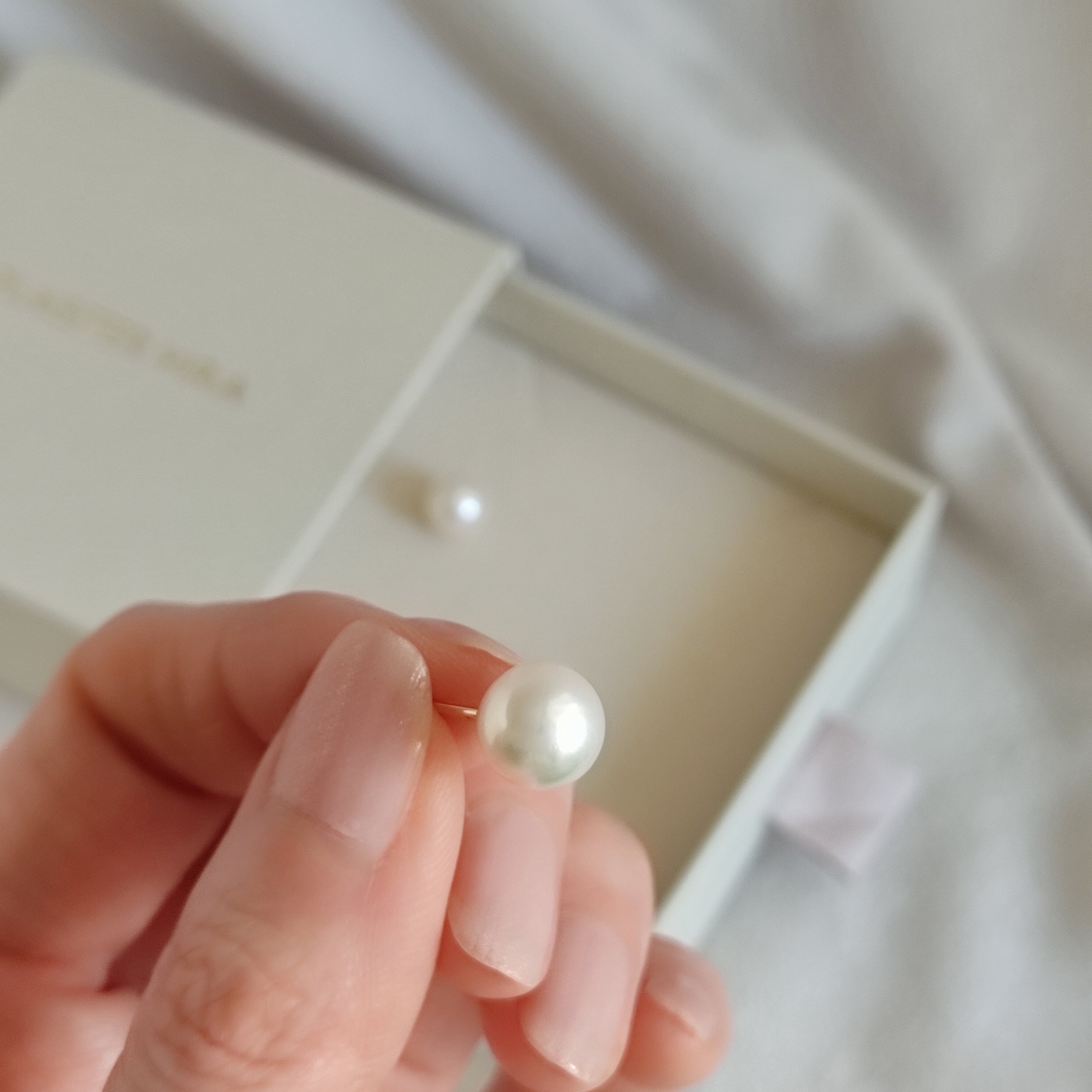 巻きが厚く、肌に傷がほとんどなく、形は真円のとても美しい極上の真珠です。