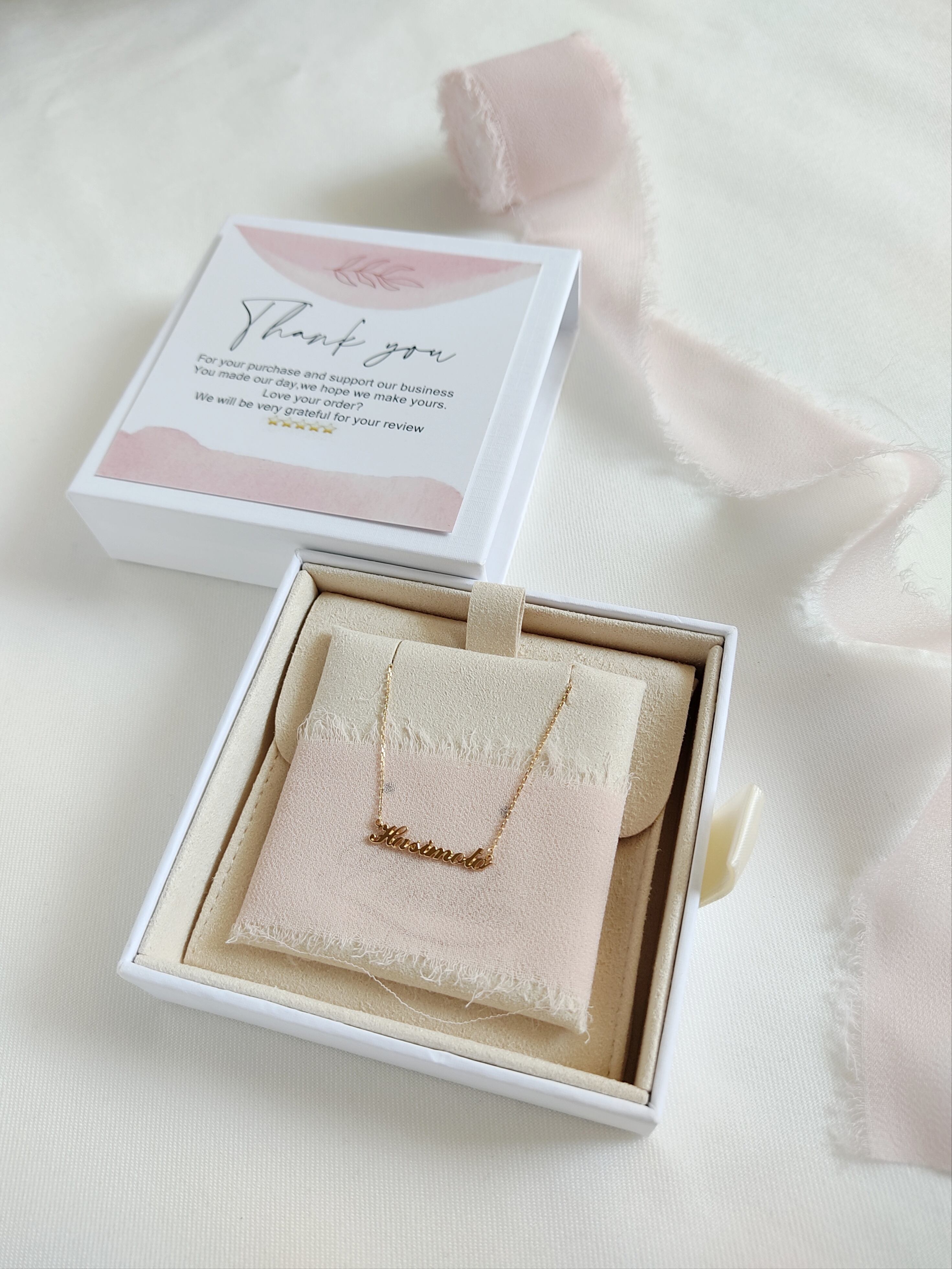 ラッピング:スエードタッチのポーチ付きのドロワーBOXが、新しく仲間入り。BOXを積み重ねて整理したり、ジュエリー以外にヘアアクセサリーなども入れたりできます。「お届けしたボックスを再利用して欲しい」と想いお作りしました。とても軽量なペーパー素材、環境に配慮した人工スエード素材を使用したラッピングです。お手渡し用に手提げ袋をご希望の場合は、備考欄にてお知らせください。